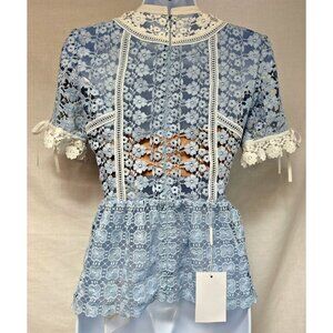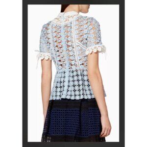 Self Portrait Blouse Top Petal Panelled Top Baby Blue Size 0 UK4 Orig Price $340
