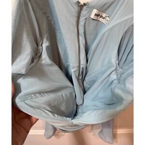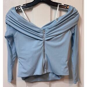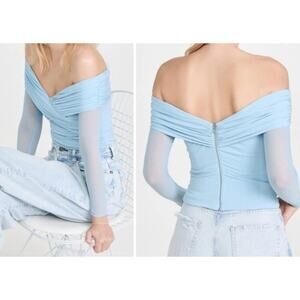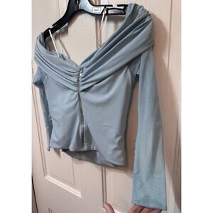 Self Portrait Blue Off The Shoulder Cold Shoulder Sheer Sleeve Top Size 6