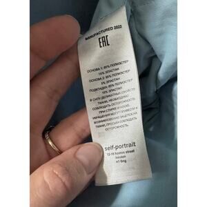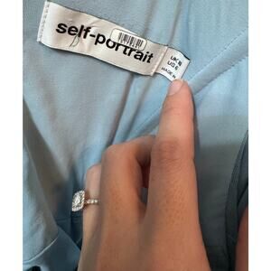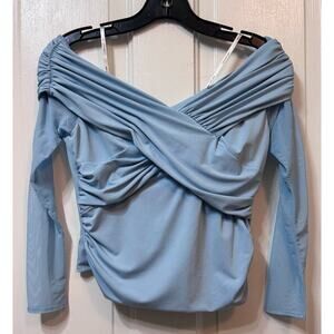 Self Portrait Blue Off The Shoulder Sheer Sleeves Top. Size 6/M. Pre-owned. Lightly worn. No tears or snags. Nice Spring/Summer top. (#268A)
