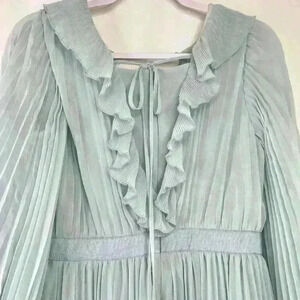 Self Portrait Blue Pleated Goddess Dress Gown Size Medium