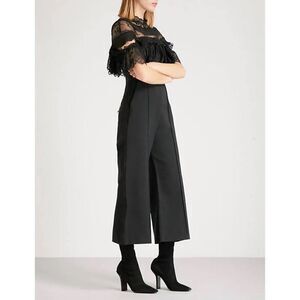 Self Portrait Fine Lace Black Cropped Wide Leg Jumpsuit. Size 2.
