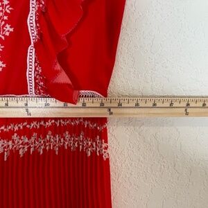 Self- Portrait Flower Spell Maxi Ruffle Pleated Dress Size US6 Red V Neck