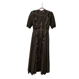 Self Portrait Geometric Black Lace Midi Dress short sleeve ruffle accents US size 6