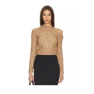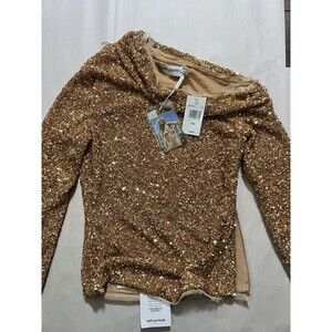 Self Portrait Gold Sequin Asymmetric Zip Top Sz 0 NWT
