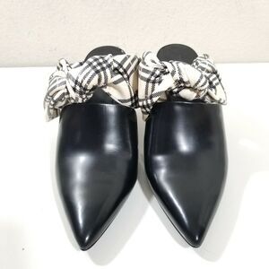 Self Portrait Lily Mules Block Heel Bow Black Leather Sz 9.5 NIB $460