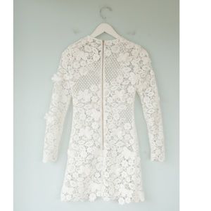 Self Portrait Long Sleeve Off White Lace 3D Mini Dress