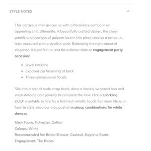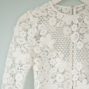 Self Portrait Long Sleeve Off White Lace 3D Mini Dress