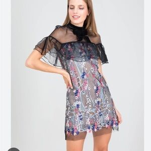 Self Portrait Multicolor Floral Vine Embroidered Mini Dress