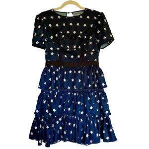 Self Portrait Navy Blue White Stars Tiered Mini Dress Size 8