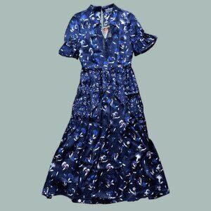 NWT Self Portrait Midi Dress. Collared midi dress blooming with mixed-scale floral patterns and trimmed with lace. A deep v neck, an open back, and a leg slit add a hint of sexiness to an otherwise demure dress.