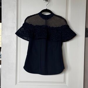 Gorgeous top by Self- Portrait. Navy Hudson Lace Cotton Top - seen on TV. Size 2 Measures approximately: 15 across bust and 23 1/2" length.