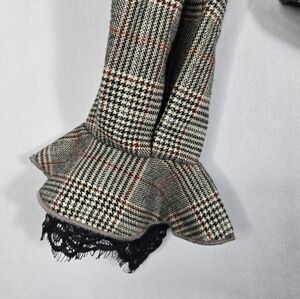 Self Portrait Off The Shoulder Plaid Top Womens Size 6 Ruffle Crop Lace Trim