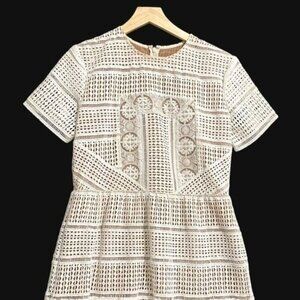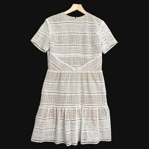 Self Portrait Patchwork Lace Mini Dress, White with Nude, Size 10
