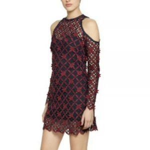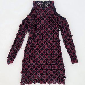 Self Portrait Women's Red Floral Grid Lace Cold Shoulder Dress NWT Size S 6