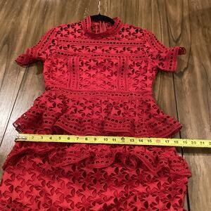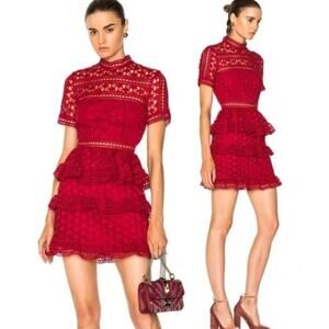Self Portrait Red Star Guipure Lace Paneled Red Mini Dress US6 UK10
