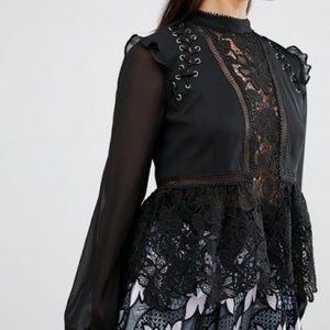 Self Portrait Size 4 Lacey Blouse Mock Neck