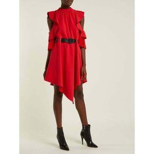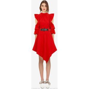 Self Portrait asymmetrical cinch waist belted dress bright red size 6