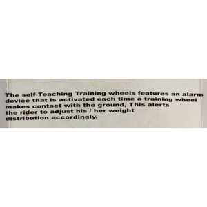 The self-Teaching Training wheels features an alarm device that is activated each time a training Wheel makes contact with the ground, This alerts the rider to adjust his / her weight distribution accordingly.