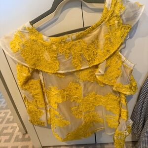Self portrait yellow floral fil coupe asymmetrical blouse Really fun vacation or party top! Worn twice. Size 0