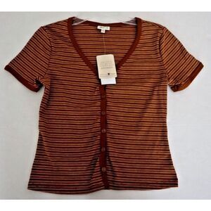 Self Esteem 13MPAQHP Women's Sz XS Glazed Ginger Striped Ribbed V-Neck Knit Tee