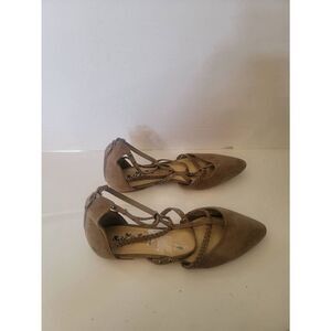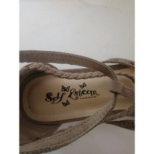 Self-Esteem Women's Tan Suede Embellished Strappy Flat Sandals Size 8.5