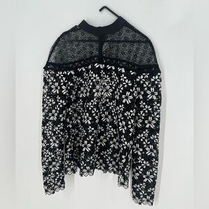 Self-Portrait Antoinette Guipure Mixed Floral Lace Sheer Top Romantic Blouse