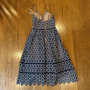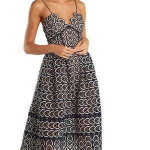 Self-Portrait Azaelea Lace Midi Dress in navy, size 2. Sweetheart neckline and thin straps. Has pockets. Super thick dress and very high quality.