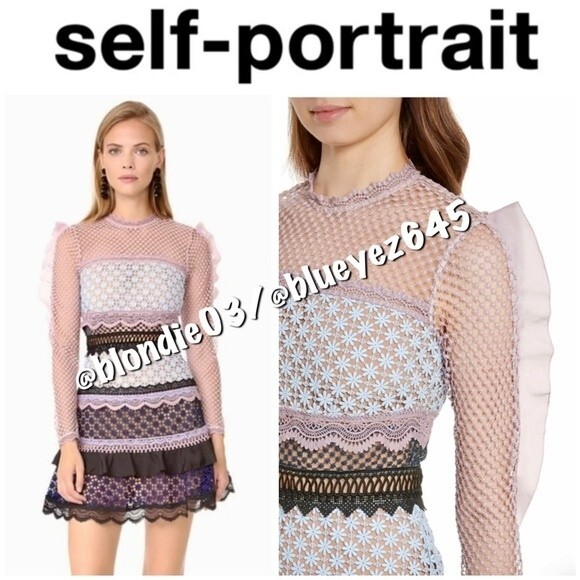 Self-Portrait “Bellis” lace trim dress with frilled sleeves US10/UK6