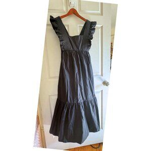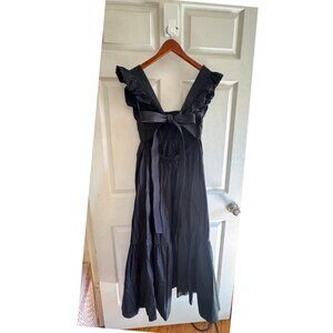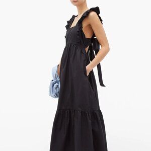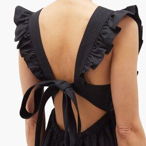 Self-Portrait Black Apron Pinafore Open-Back Ruffled Cotton-Poplin Midi Dress