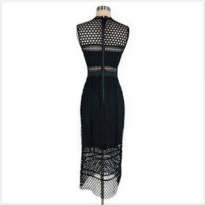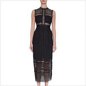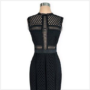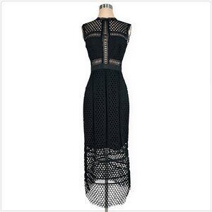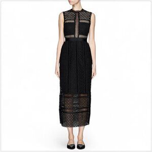Self-Portrait Black Crochet Lace Long Midi Column Tiered Dress New NWOT 6