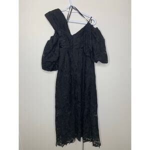 Self-Portrait Black Puff Sleeve Leaf Guipure Midi Dress