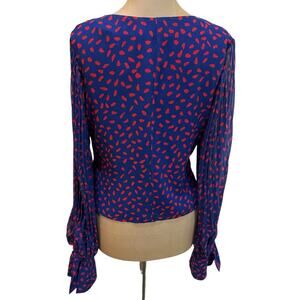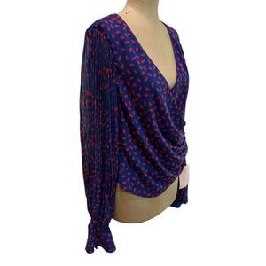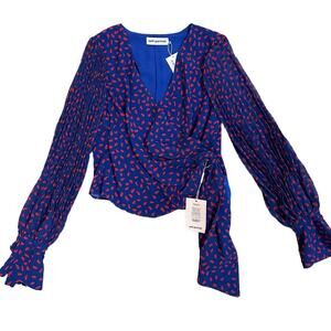 Self-portrait NWT red and blue chiffon printed wrap blouse size 6