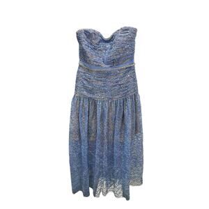 Self-Portrait Blue Strapless Lace Midi Dress US 4 Polyester Blend Cocktail