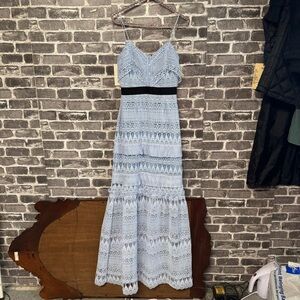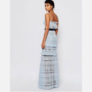 Self-Portrait Blue Teardrop Guipure Lace Maxi Dress