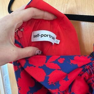 Striking dress by Self-Portrait in red and blue. Eye-catching floral design. Size 4