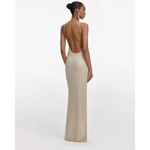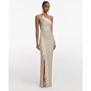 Self-Portrait Champagne Rhinestone Lace Trim Maxi Dress US 2