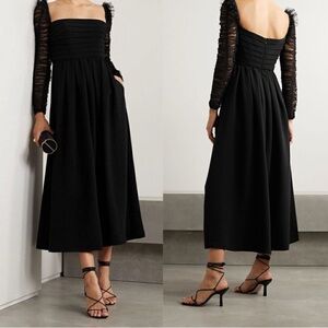 Self-Portrait Crepe Dot Mesh Sleeved Midi Dress sz 10