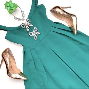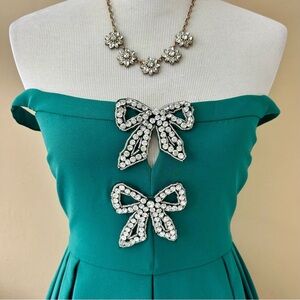 This green crepe rhinestone crystal bow cocktail dress from Self Portrait is stunning!