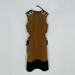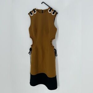 Self-Portrait Cut Out Ruffle Tie String Eyelet Sleeveless Brown Black Midi Dress