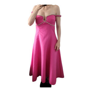 Self-Portrait Diamante Embellished Textured Midi Dress 4 Pink Evening Formal. great condition. A-line silhouette, off-the-shoulder neck trimmed with sparkling diamante embellishments, Off-the-shoulder style, Sleeveless, Zip-back closure, Side slit pockets. Evening, Formal, event, wedding, Barbie, barbiecore, party, Feminine, romantic, designer, elegant, Chic, gala, Cocktail, ball gown.