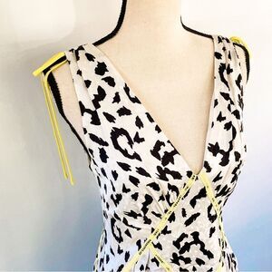 Self Portrait Embroidered Leopard Print Satin Jacquard Pleated Midi Dress Sz 4