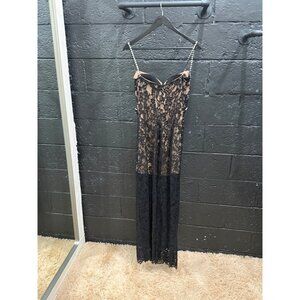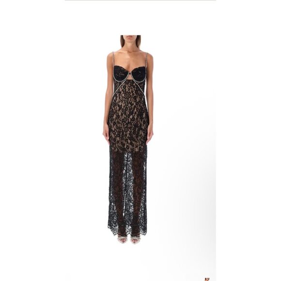 Fine Lace Maxi Dress By Self Portrait. Featuring: Sheer Fine Lace Lingerie-inspired Top Diamanté Straps At Shoulders, Cups And Waist Cut-out Bodice Rear Zip Fastening