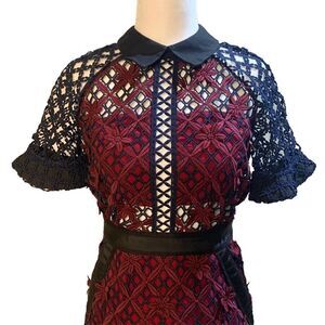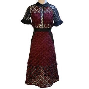 Self-Portrait Floral Grid Midi Dress Lace Collared US 2 UK 6 Extra Small