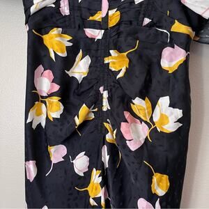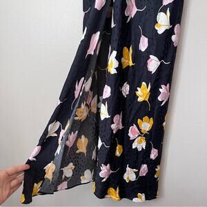Self-Portrait Floral Off the Shoulder Ruched Corset Satin Slit Maxi Dress Black