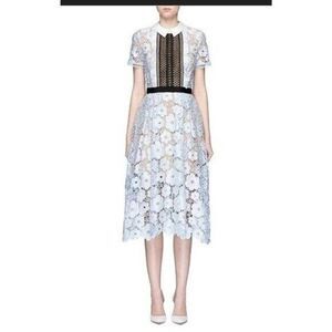 Self-Portrait Flower Garden Guipure Lace Dress in Light Blue Size US4 UK8