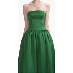 Self-Portrait Green Satin Bandeau Strapless Maxi Dress Size 2