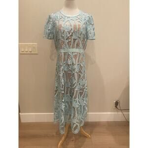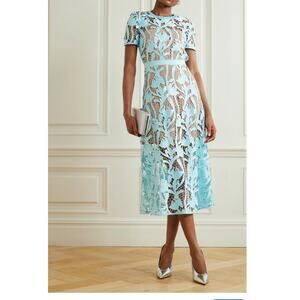 Self-Portrait Grosgrain-Trimmed Embroidered Satin Guipure Lace Midi Dress US 12