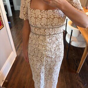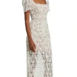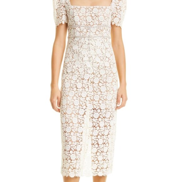 Self-Portrait Ivory Floral Guipure Midi Dress