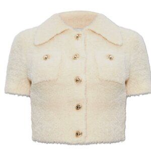 A regular-fit silhouette with a collared neckline and short sleeves gives this wool blend knit a classic, understated appeal. The button-front design and cropped length create a refined look ideal for everyday wear or a polished office ensemble.