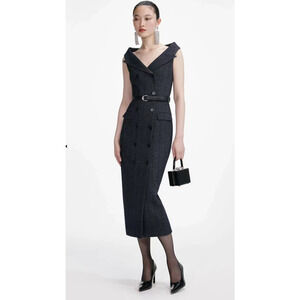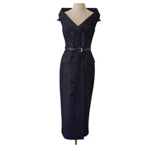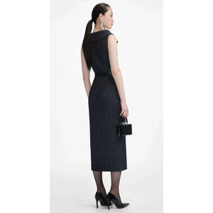 Self-Portrait Navy Herringbone Wool Midi Dress US 2